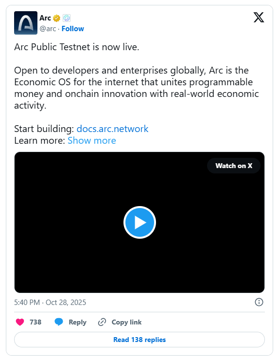 Arc is designed as an “Economic Operating System” offering dollar-based fees, sub-second transaction finality, and optional privacy for regulated financial use cases. Circle CEO Jeremy Allaire described the project as a bid to build an open, internet-native framework for global economic coordination and value transfer.