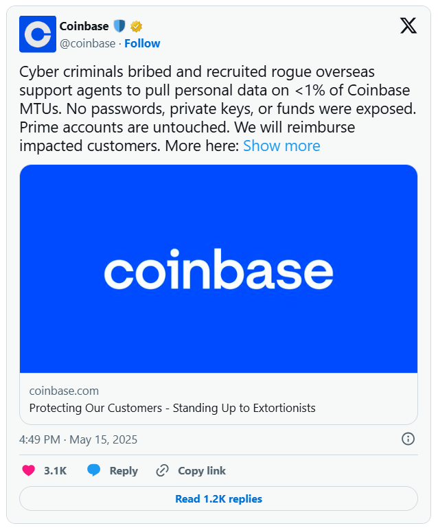 GM. Coinbase is reeling after a major internal data breach exposed customer info and triggered a potential $400 million liability, raising urgent questions about platform trust and security.