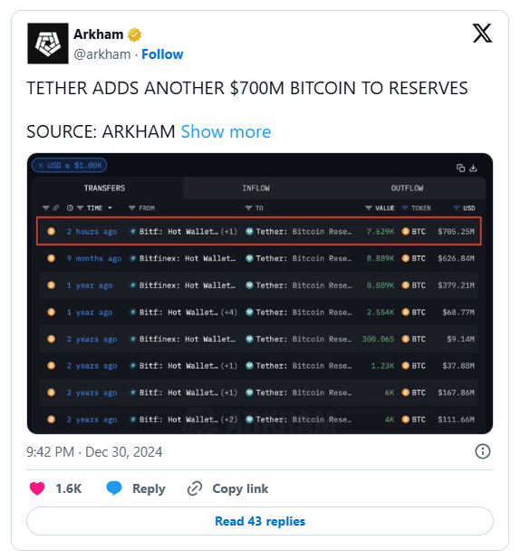 With Bitcoin’s price doubling in 2024, corporate treasuries, including Tether, have seen renewed interest in crypto holdings as strategic assets. Tether’s Bitcoin reserves remain second only to Block.one and are among the largest holdings by any private or public company.