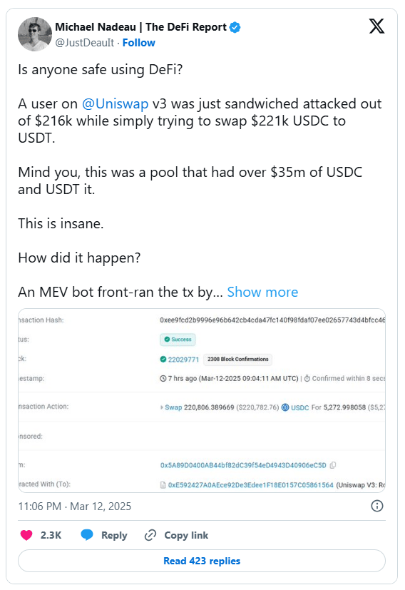 Trader Loses $215K in Stablecoin Swap Due to MEV Attack