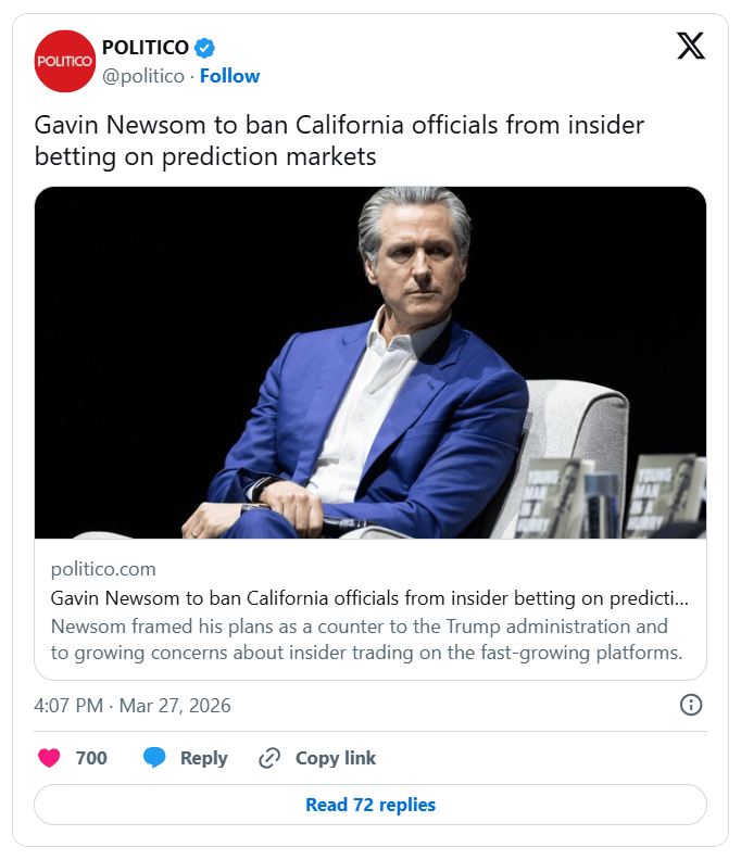 Governor Gavin Newsom signed an executive order to prohibit California public officials from using confidential information for financial gain. This new state mandate immediately prevents political appointees from leveraging non-public data to place profitable wagers on various prediction platforms.