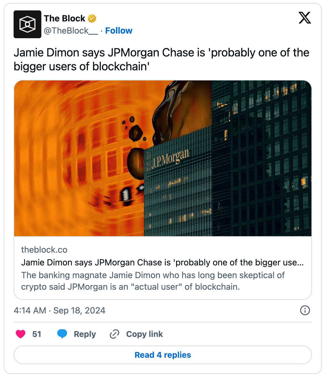 JPMorgan is a Top User of Blockchain Tech, Says CEO