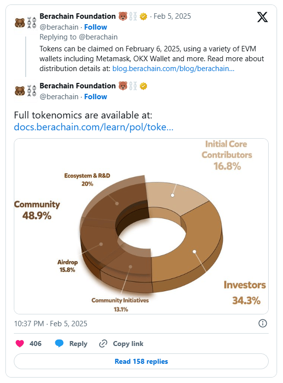 Berachain Unveils Tokenomics and Airdrop Details