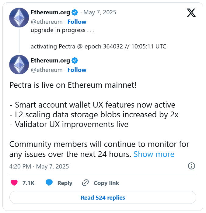 - Ethereum Deploys Pectra Upgrade on Mainnet