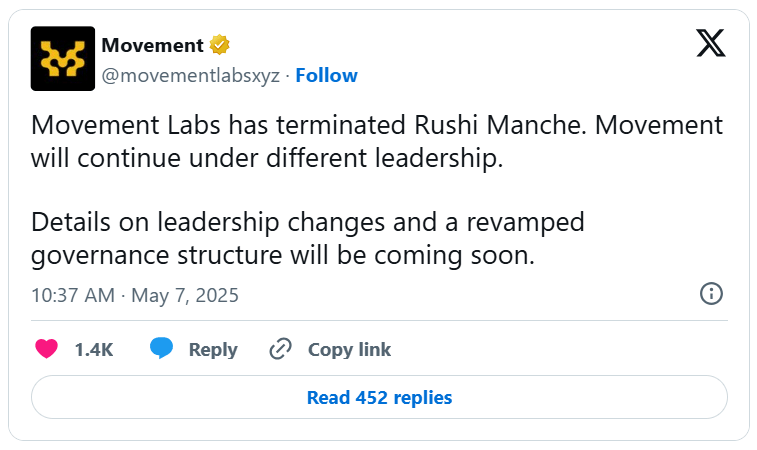 Movement Labs Fires Co-Founder Amid Token Dump Fallout