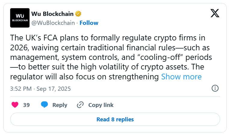 The initiative forms part of legislation due in 2026 that expands the FCA’s remit across crypto custody, trading, and stablecoins. Industry critics warn the approach risks over-regulation and discouraging firms from operating in the UK. Analysts said the consultation reflects Britain’s attempt to regain ground against jurisdictions like Dubai and Singapore.
