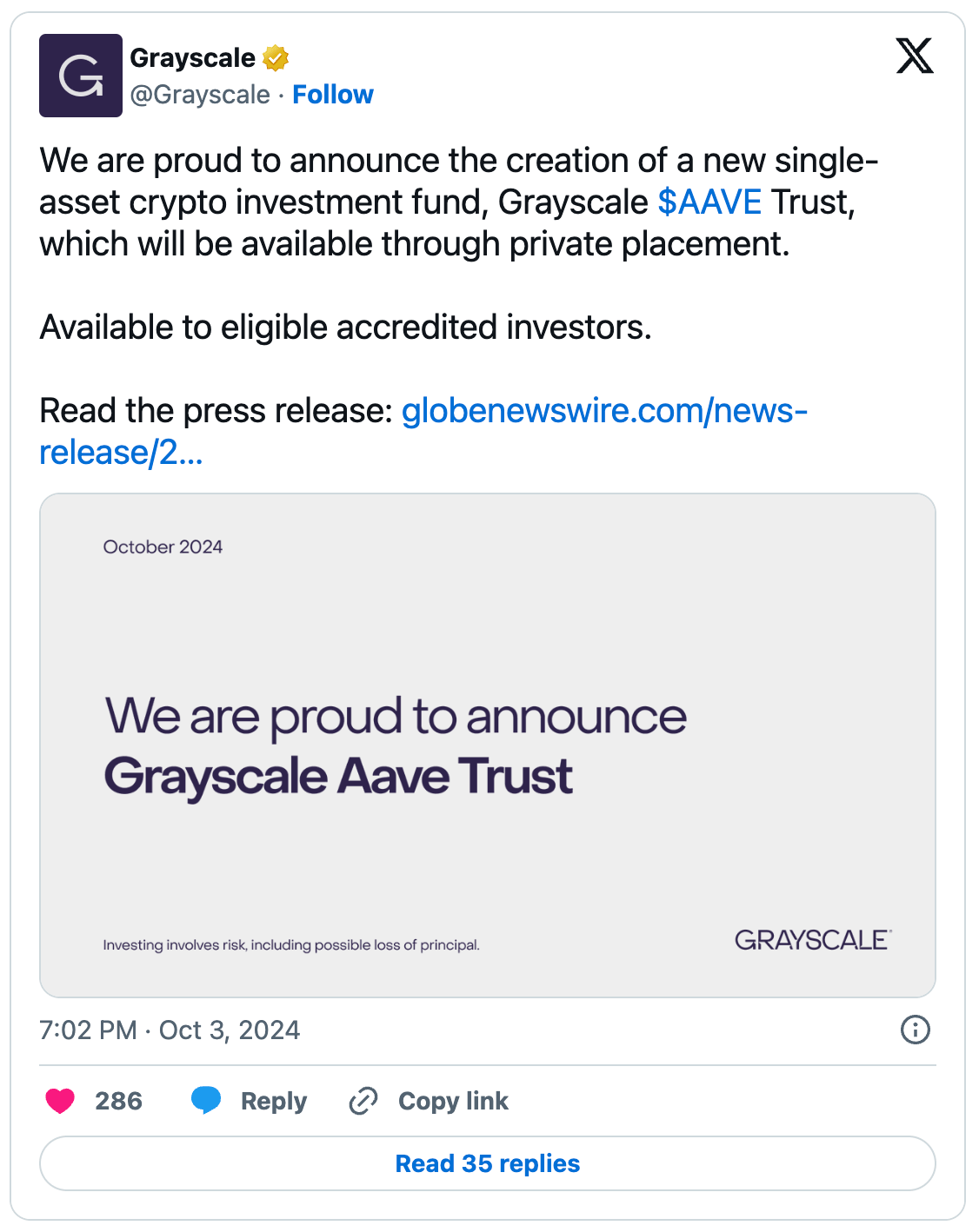 Grayscale Launches Aave Trust for DeFi Lending Exposure