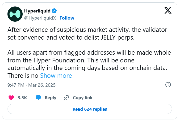 - Hyperliquid Delists JELLYJELLY After $12M Whale Attack