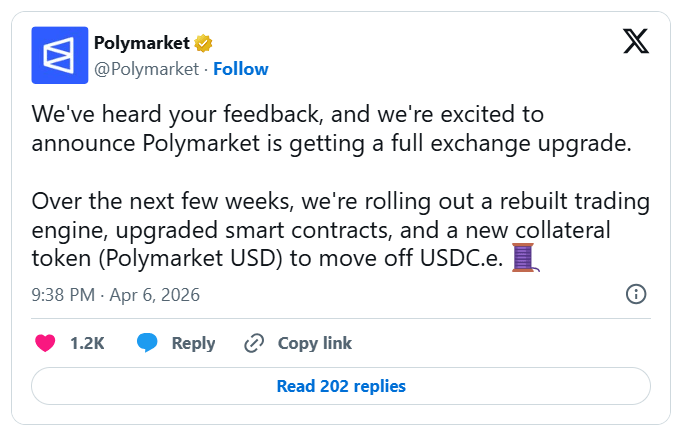 The largest onchain prediction market Polymarket announced a massive overhaul of its core trading engine and smart contract infrastructure on Monday. This major migration to V2 will introduce more efficient order matching plus reduced gas consumption for millions of global retail participants. Developers must update their current software kits immediately.