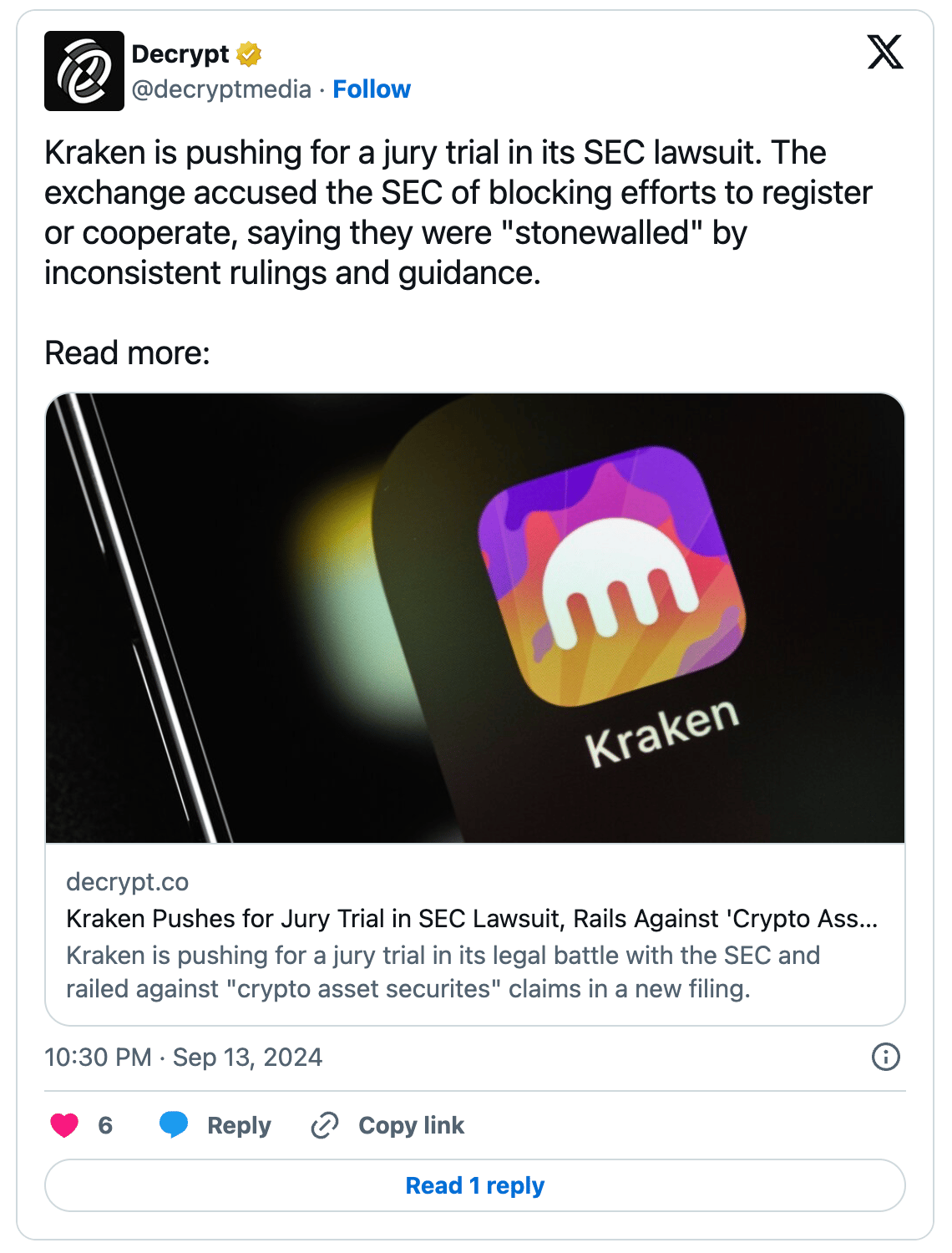 Kraken Demands Jury Trial in SEC Lawsuit Over Crypto