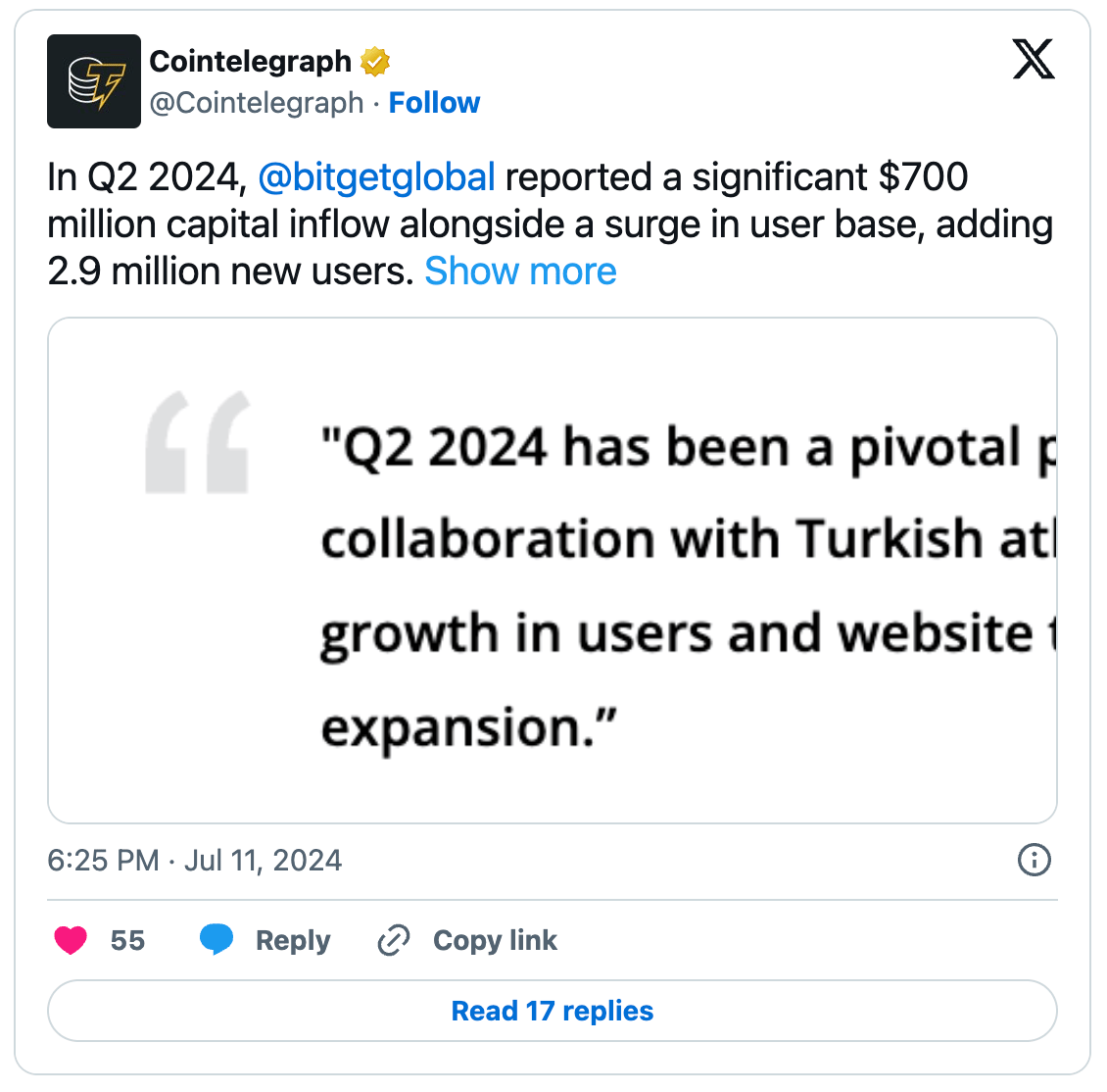 Bitget Reports $700M Inflows and 2.9M New Users in Q2