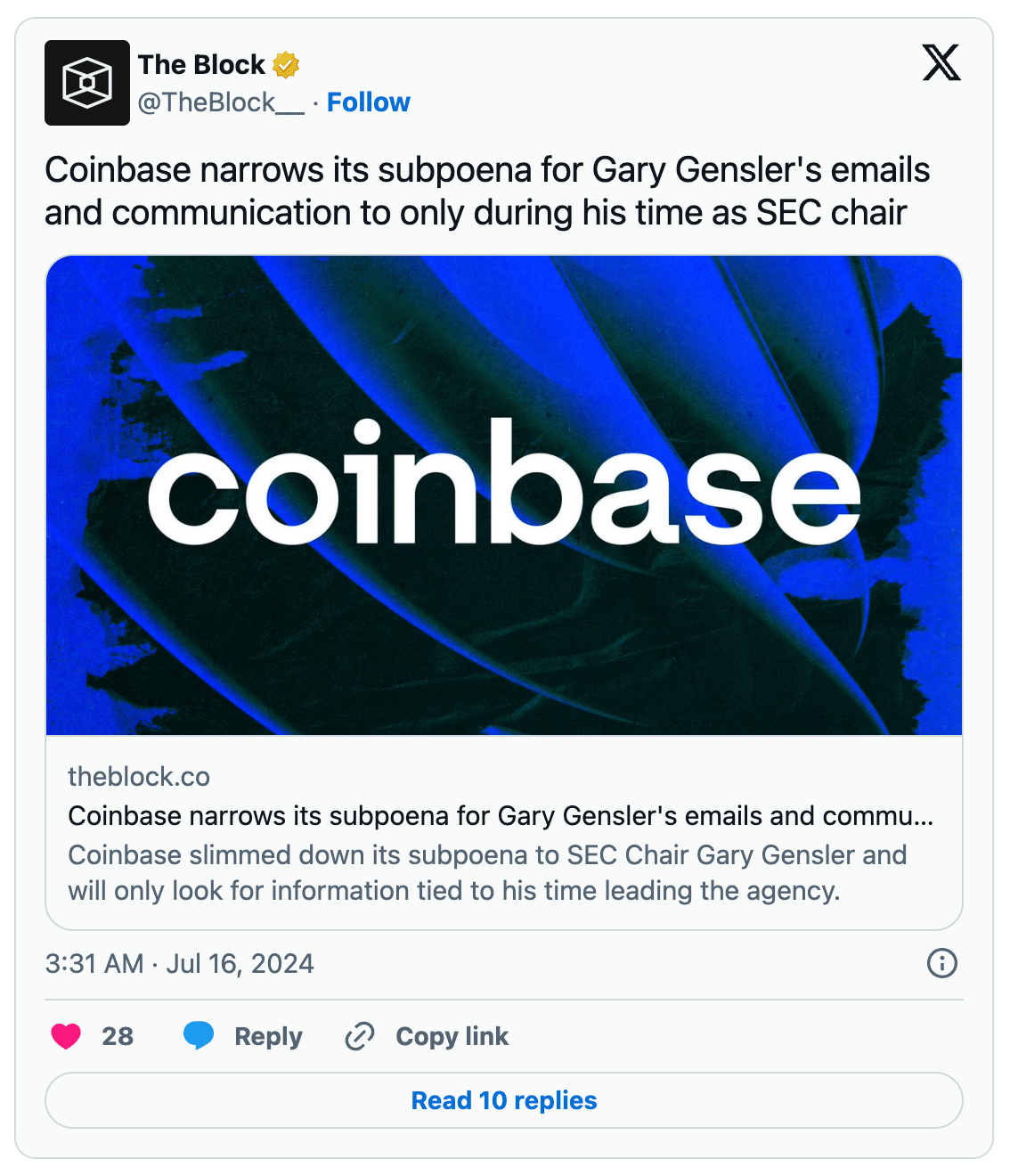 Coinbase Narrows Subpoena to Gary Gensler's Emails