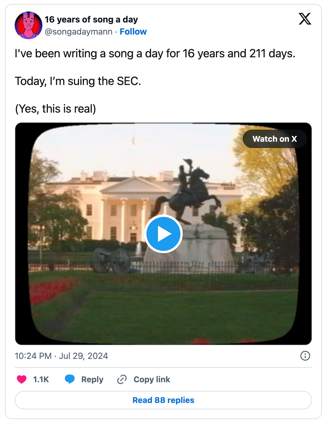 Two artists, law professor and filmmaker Brian Frye and songwriter Jonathon Mann, have sued the US Securities and Exchange Commission (SEC) to determine if nonfungible tokens (NFTs) fall under the SEC's authority. Their attorneys seek clarification on whether creating and selling NFT art triggers US securities laws, including whether artists must register their NFT art and disclose risks to buyers.