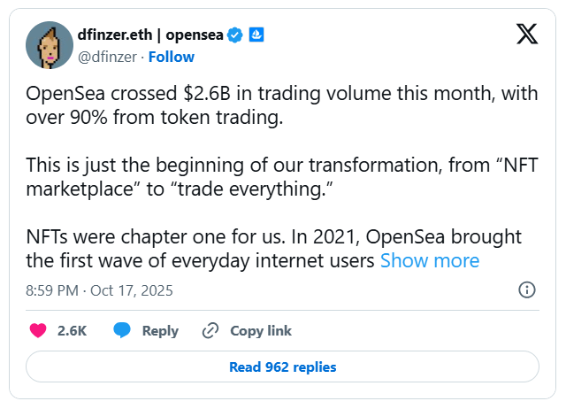 OpenSea announced plans to release its SEA token in early 2026 as part of its ambitious multi-chain expansion strategy. CEO Devin Finzer said half of all token supply will go to community users through an extended initial claim window. The company will also direct fifty percent of launch revenue to SEA buybacks for ongoing ecosystem and liquidity development incentives.