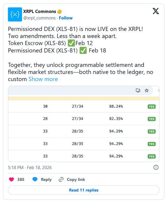 The XRP Ledger officially activated its XLS-81 amendment this Wednesday to provide a permissioned layer for regulated institutions. This specific upgrade allows banks and brokers to operate gated, members-only trading venues with built-in compliance protocols for verified participants. Designated administrators can now enforce strict identity checks while maintaining the ledger’s native speed and atomic settlement advantages.