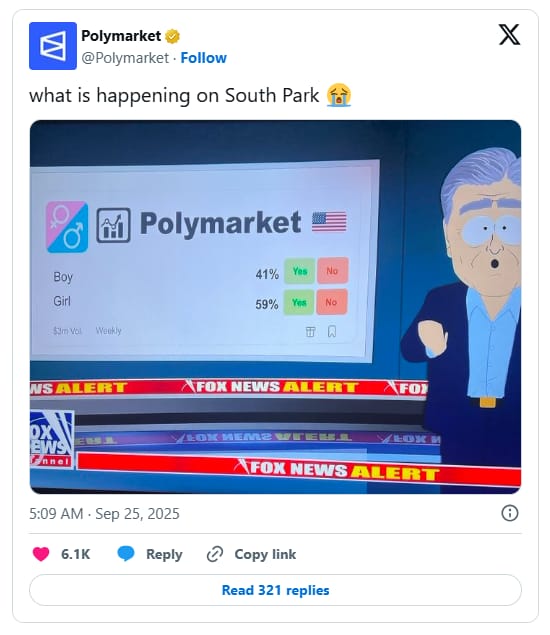South Park’s episode “Conflict of Interest” directly mocked prediction markets, referencing Polymarket and Kalshi by name. Characters portrayed children betting obsessively, satirizing how easily anything could become a wagerable event. Market users even created bets on whether their platforms would appear, but most predictions ultimately proved inaccurate.