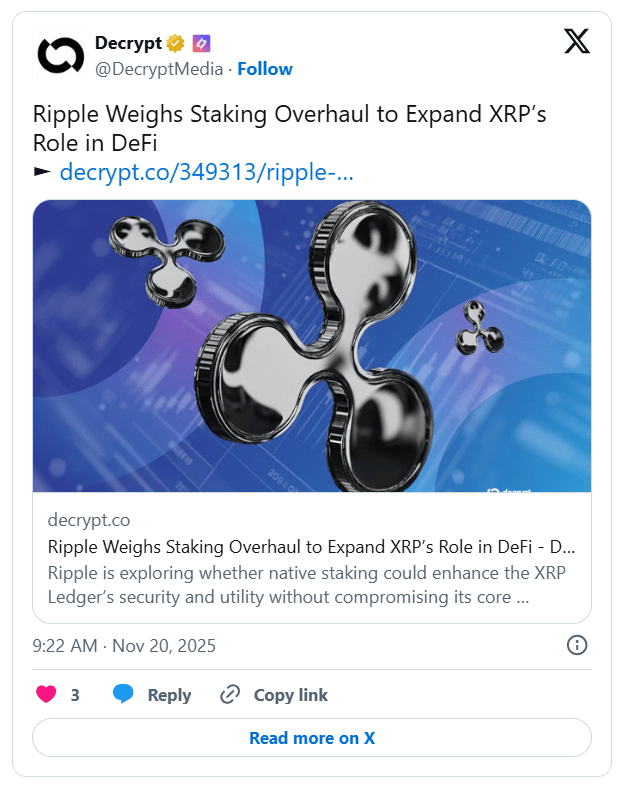 GM. Ripple is exploring native staking for the XRP Ledger, a move that could redefine validator incentives and expand the network’s potential in decentralized finance.