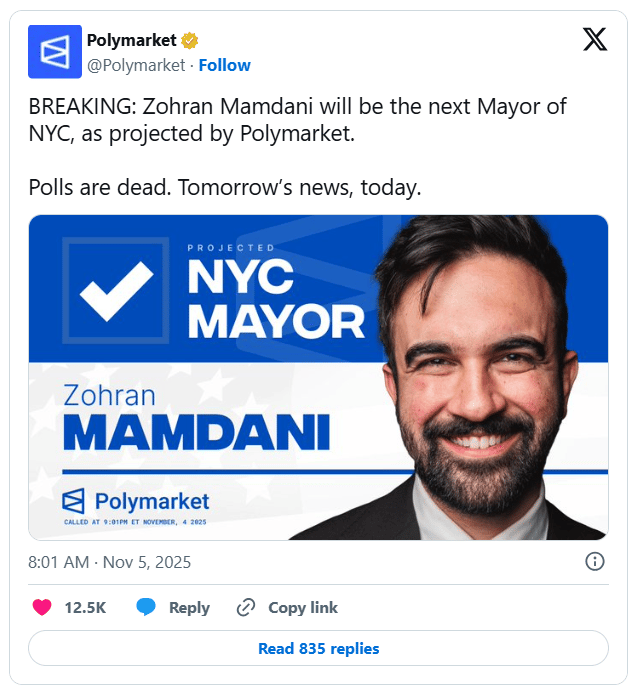 Polymarket Traders Correctly Predict Mamdani’s NYC Victory
