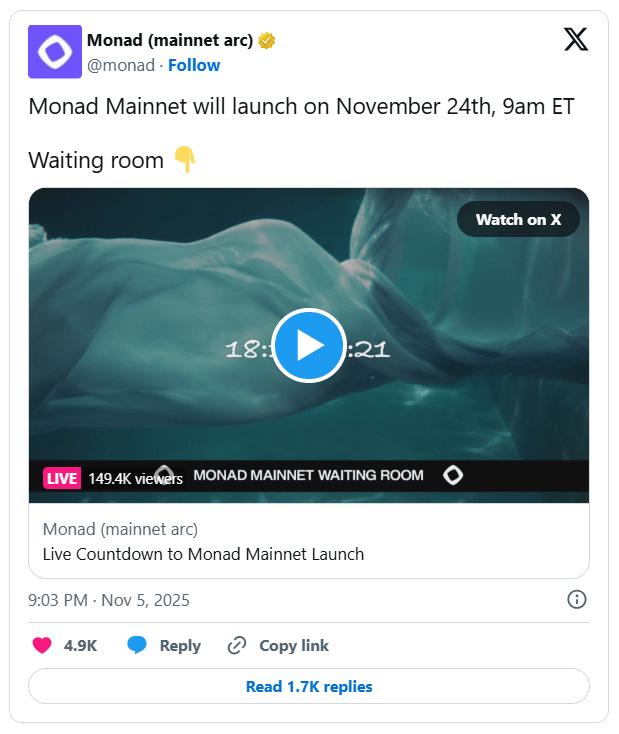 Monad Sets Launch Date and Token Airdrop for Nov. 24