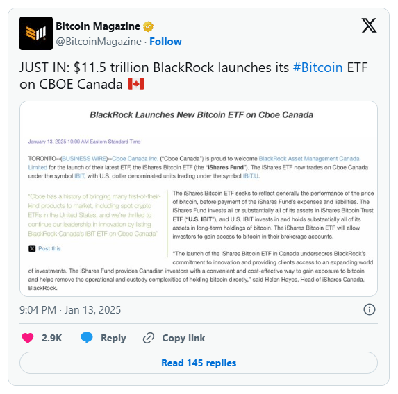 BlackRock Launches Bitcoin ETF on Cboe Canada