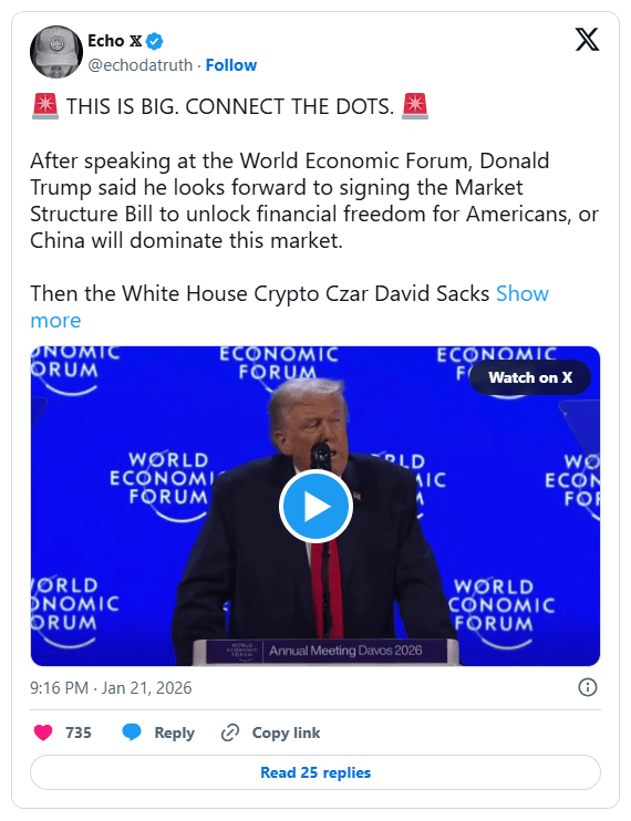 Trump Backs Market Structure Bill During Davos Speech