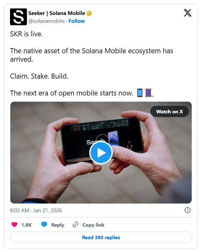 - Solana Mobile Airdrops SKR Token to Seeker Phone Owners