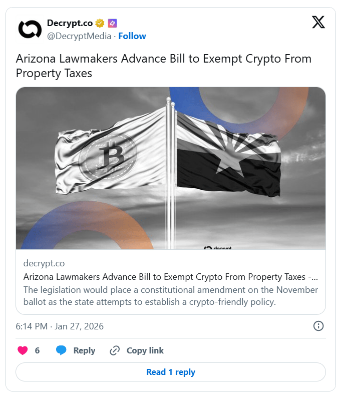 Arizona Senate Committee Advances Crypto Tax Exemption