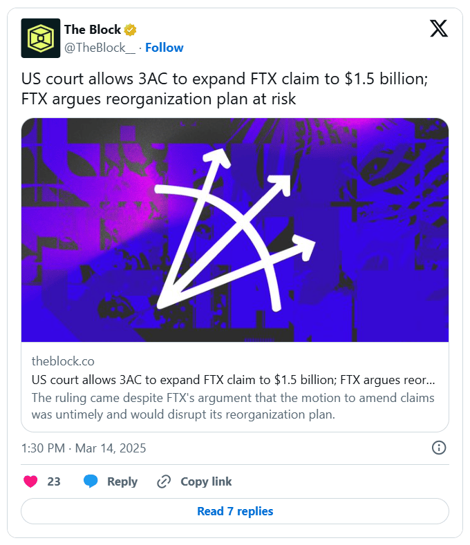 US Court Allows 3AC to Expand FTX Claim to $1.5 Billion