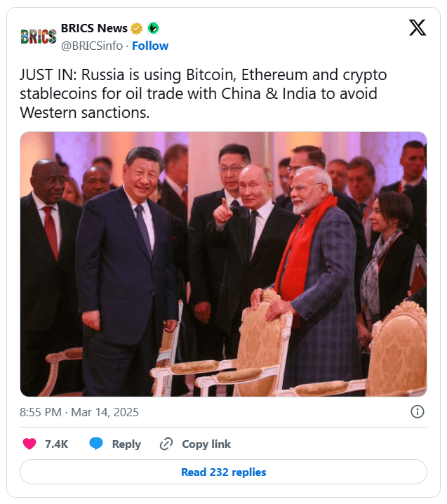 The process reportedly involves middlemen converting payments into digital assets, which are then transferred to Russian accounts and exchanged for rubles. Analysts say this follows Venezuela and Iran’s approach of using crypto to evade US financial restrictions. While Trump’s administration considers modifying sanctions on Russia, sources say crypto will likely remain part of its trade strategy regardless of policy shifts.