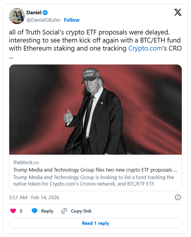 The formal SEC applications surfaced on 13 February 2026 within the Truth.Fi ecosystem to capture burgeoning retail demand for income bearing crypto instruments. These filings occurred alongside a modest 0.9% daily uptick in the parent company’s stock.