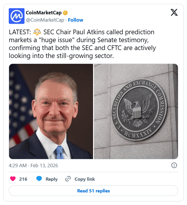SEC Chair Paul Atkins told lawmakers that federal regulators are currently focusing on the rapid growth of prediction markets. He noted during a Senate Banking Committee hearing that these platforms represent a significant area of overlapping jurisdiction with the CFTC. While the CFTC manages most event contracts, the SEC remains involved when specific product structures mirror traditional securities.