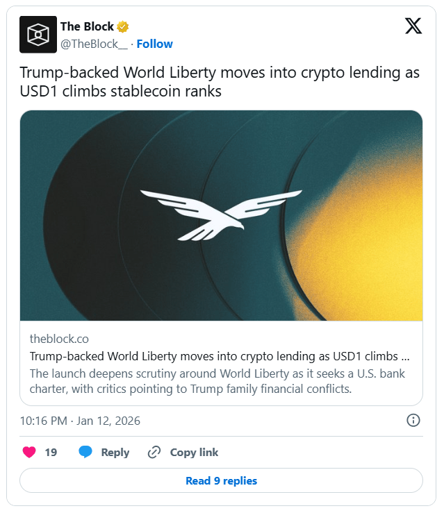 GM. Trump’s World Liberty Financial launched a lending protocol for its $3.5 billion stablecoin, seeking a national trust charter to compete with DeFi titans.