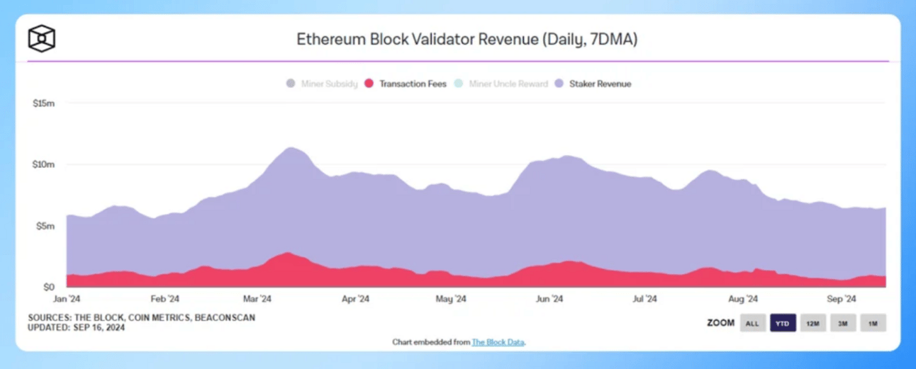 Ethereum stakers daily earnings declined sharply, with the 7-day moving average of staker revenue falling to $5.44 million on September 12, its lowest point since February. The drop is attributed to a 60% reduction in onchain activity since March, leading to fewer transaction fees and lower staking rewards. As network activity slows, both the number of transactions and onchain volume have dipped.