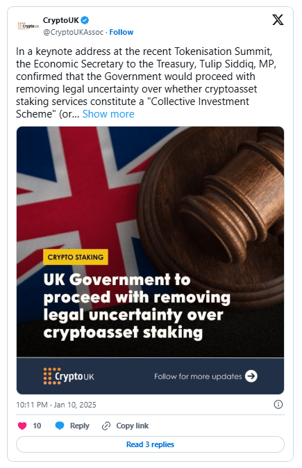 UK Clarifies Crypto Staking Regulation with Key Exemption
