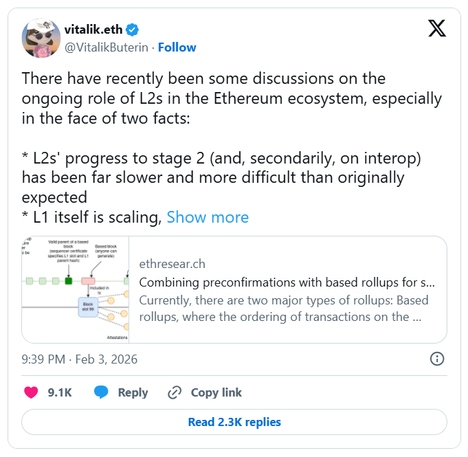 - Vitalik Buterin Reverses Ethereum L2-Centric Scaling Strategy