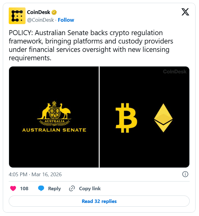 The framework focuses primarily on intermediaries that facilitate trading and hold customer assets rather than the underlying blockchain technology. If the Senate approves the measure, businesses will have a six-month transition period to comply with new disclosure and safeguarding requirements. Industry groups broadly welcomed the move toward technological neutrality to ensure that Australia remains a competitive hub for DeFi.